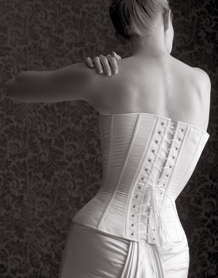 (The photos I’m using to illustrate this post are actually pictures of me wearing some of my wedding gown samples; I draft all of the original patterns from my measurements and fit all of my original samples to my own body. After all, I’m always there when I need to fit something — especially when I’m pulling one of my crazy sewing all-nighters! But more about that in a future post…)